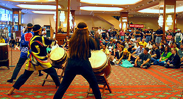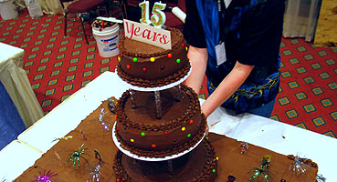3 big days of non-stop fun capped off the 15th birthday year for Project A-kon, a historical triumph of anime and manga celebration for America making A-kon the longest running anime convention ever.  This year's convention extras filled up the halls and function rooms with plenty of birthday cake action, 15th year birthday merchandise, J-Rock/J-Pop room playing all the latest bands and singers, taiko drum performances, sumo wrestling for the fans, interactive martial arts games, pocky booths, cosplay photo areas, and tons of other wild and crazy activities that make the convention weekend a pure blast to come to every year.