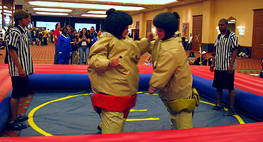 and singers, taiko drum performances, sumo wrestling for the fans, interactive martial arts