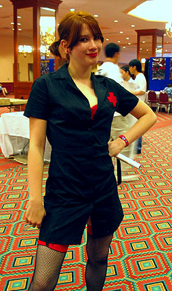 LLNN's trip to Project A-kon 15 for 2004 saw an outstanding load of inspired costumes from numerous anime, manga, video games, and J-pop/rock.  Chart-topping displays for this year included characters from Naruto, Final Fantasy, Full Metal Alchemist, Ah! My Goddess, and many more!  Please enjoy this year's Project A-kon cosplay galleries and applaud all the hall cosplayers who came to strut their stuff and show their cosplay spirit!