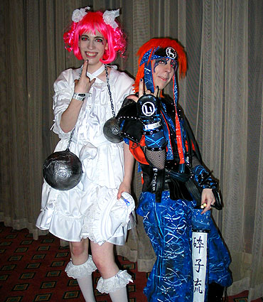 LLNN's trip to Project A-kon 15 for 2004 saw an outstanding load of inspired costumes from numerous anime, manga, video games, and J-pop/rock.  Chart-topping displays for this year included characters from Naruto, Final Fantasy, Full Metal Alchemist, Ah! My Goddess, and many more!  Please enjoy this year's Project A-kon cosplay galleries and applaud all the hall cosplayers who came to strut their stuff and show their cosplay spirit!