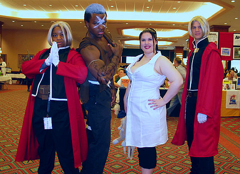 LLNN's trip to Project A-kon 15 for 2004 saw an outstanding load of inspired costumes from numerous anime, manga, video games, and J-pop/rock.  Chart-topping displays for this year included characters from Naruto, Final Fantasy, Full Metal Alchemist, Ah! My Goddess, and many more!  Please enjoy this year's Project A-kon cosplay galleries and applaud all the hall cosplayers who came to strut their stuff and show their cosplay spirit!