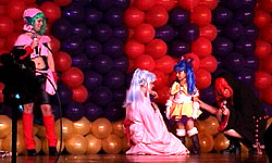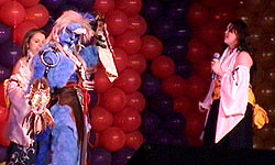 Project A-kon 15 Cosplay Contest Awards Judges Award: #5 Kimari from Final Fantasy X Judges Award: #34 The Cat Returns Judges Award: #63 Princess Tutu Judges Award: #46 Ah! My Goddess Judges Award: #33 Ah! My Goddess Junior Award: #32 Sailor Luna Best Skit: #2 Utena Most Humorous Skit: #10 Bill Gates and Chii-O-chan Best Stage Presence: #4 Kouga from Inuyasha Most Original: #25 Boltakun Best Technical: #23 Reinamon from Digimon Third Place: #12 Area 88 Second Place: #17 Rikku and Sora from Kingdom Hearts Best in Show: #67 Mortal Kombat Click here for a look at the Post-Cosplay Contest Galleries! |