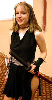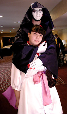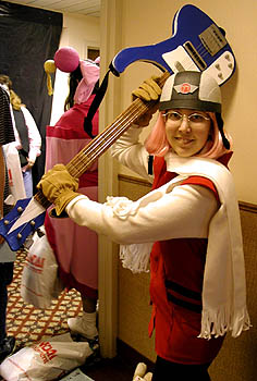 Anime Central 2001 enjoyed an explosion of new costumes!  With new entries from Guilty Gear X, Escaflowne, Sera Myu, Pretty Sammy, and much more, the cosplayer population has grown considerably since last year.  Hundreds of avid cosplay fans traveled from near and far to celebrate the anime weekend by dressing up in many different costumes, all stylish, simple, elegant, and sexy, and even posing in character form for the enjoyment of surrounding fans. To many, cosplaying is a welcome relief from the grim "real world" into a fantasy world of lights, cameras, and lots of friends to enjoy the exciting convention experience with.  Please enjoy this massive photo collection and remember to applaud the efforts of the cosplaying fans who deserve to be famous celebrities for a few days!