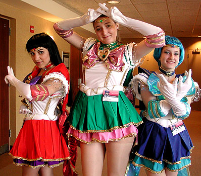 Anime Central 2001 enjoyed an explosion of new costumes!  With new entries from Guilty Gear X, Escaflowne, Sera Myu, Pretty Sammy, and much more, the cosplayer population has grown considerably since last year.  Hundreds of avid cosplay fans traveled from near and far to celebrate the anime weekend by dressing up in many different costumes, all stylish, simple, elegant, and sexy, and even posing in character form for the enjoyment of surrounding fans. To many, cosplaying is a welcome relief from the grim "real world" into a fantasy world of lights, cameras, and lots of friends to enjoy the exciting convention experience with.  Please enjoy this massive photo collection and remember to applaud the efforts of the cosplaying fans who deserve to be famous celebrities for a few days!