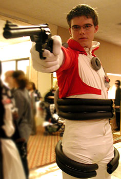 Anime Central 2001 enjoyed an explosion of new costumes!  With new entries from Guilty Gear X, Escaflowne, Sera Myu, Pretty Sammy, and much more, the cosplayer population has grown considerably since last year.  Hundreds of avid cosplay fans traveled from near and far to celebrate the anime weekend by dressing up in many different costumes, all stylish, simple, elegant, and sexy, and even posing in character form for the enjoyment of surrounding fans. To many, cosplaying is a welcome relief from the grim "real world" into a fantasy world of lights, cameras, and lots of friends to enjoy the exciting convention experience with.  Please enjoy this massive photo collection and remember to applaud the efforts of the cosplaying fans who deserve to be famous celebrities for a few days!