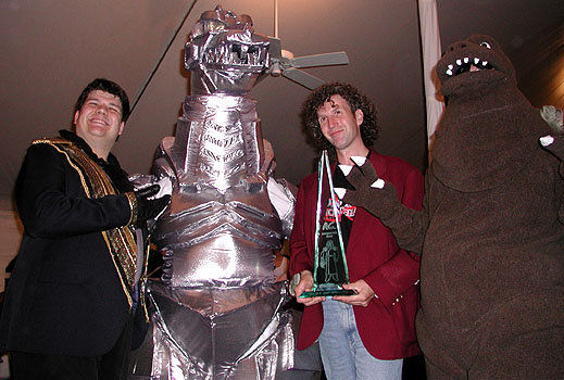| Winner! Best Presentation: "Ode to Otaku and Pocky" with PockyGirl and her ACen covergirls | Winner! Best of Show: Mecha Godzilla with his buddy the original Gojira from last year's winning Best of Show |