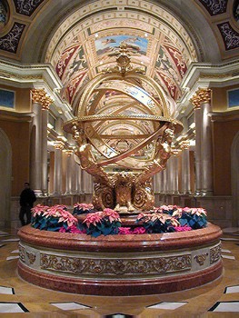 | Lobby sculpture inside the Venetian | Across the street view of New York, New York |