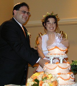 | The couple complete their vows underneath an altar festooned with traditional ornate Jewish wedding decorations. | The dance combined traditional Jewish festive beats with tunes of Sera Myu musical themes into an eclectic mix of party rhythms sure to inspire lifelong memories. |