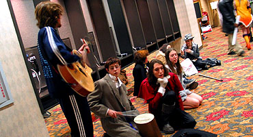 each end of the big day. Musicians performed for passersby and casual fans staked out