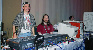 Along with all the parties and open night festivities surrounding Katsucon, legions of fans gathered en masse to the Ballroom on Friday and Saturday nights to whip up some hooplah and dance the night away.  The dance was a great success with DJs Rob "Rhubarb" Lantz, Paul Moscatt, and other noteworthy contenders playing lots of dance selections from various anime, video games, and contemporary EuroBeat rave tracks.