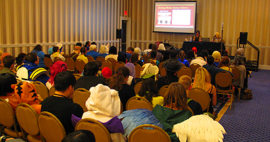 Guests included Robert Aldrich, Christopher Ayres, Greg Ayres, Steve Bennett, Holly Blumner, Brian Boling, Kevin Bolk, Lawrence Brenner, Kathrine Callahan, T Campbell, Katie Chaplin, Chin Hamaya Culture Center, The Comiku Girls, Charles Dunbar, Richard Epecar, Kaja Foglio, Phil Foglio, Geek Comedy Tour, Garth Graham, Yaya Han, Caroline Holbrook, Richard Horvitz, Greg Houser, Phil Kahn, Kamui, Kuniko Kanawa, Senno Knife, Kate A. Lebherz-Gelinas, Sarah Martinez, Kevin McKeever, Sarah Rempe, Bill Rogers, Jamie Rosenberg, Rikki Simons, Ellyn Stern, Tom Stidman, Super Art Fight, Symphonic Anime Orchestra, Tainted Reality, Michael Terracciano, and Tavisha Wolfgarth-Simons. Exhibits included the Katsucon Art Show, Autograph Sessions, Charity Auction, Hall Costume Contest, Japanese Cultiral Institute, Artists Alley, LARP, Maid Cafe, Model Contest, World Cosplay Summit, Katsucon Dance, Katsucon Idol, Anime Music Video Contest, Masquerade, and much more. Panels and Workshops included 3D Printing and Cosplay, 8-bit Improv, Adventure Time Theories, Affording Lolita, Anime Biology 101, Con Stories and Fan Glory, Anime Vendors are Serious Business, Horror Anime, Asian Brush Writing, Awesomely Bad Japanese Music Videos, Awkward Dance Moves, Best Anime Movies You Haven't Seen, Brief History of Anime, Brief History of Japan, Character Building 101, Closet Cosplay, Convention Chair Summit, Cosplay and the Camera, Cosplay Chess, Cosplay Dance Off, Creating Music for Animation, Crossplay for Girls, Critical looks at Popular and Classic Anime, 15 Years of Digimon, Dramatic Fanfic Readings, Everyday Life in japan, Fabric Choices in Cosplay, Face Your Cosplay Fears, Fan Fiction Pet Peeves, Formal Ball, Getting Fit for Cosplay, History of Taiko Drumming, Convention on a Budget, Japan on a Budget, Martial Arts, Amsrican J-Rock Industry, Japanese Language, Kamui's Armor Making, Kamui's Prop Making, Kimonos, Modern Japan, Power Rangers, Lolita Fashion Show, Meaning and History of Sushi, Making Plushies, Mystery Anime Theater, Origami, Photoshop 101, Puppet Making Workshop, Posing for Cosplayers and Photographers, Silk Painting, Social Issues within Cosplay, Super Art Fight, Webcomic Artists Roundup, Victorian Japan, Wig Dyeing 101, Women in Japan, Yokai Nation, World War Gundam Style, and much more. |