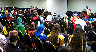 cosplay competitions, and poular anime characters from Trigun, Lain, and .hack seen as popular
