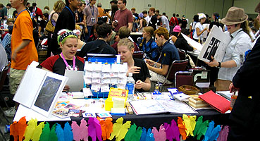 Otakon 2004 showed its true colors with an Artist Alley to die for, complete with exquisite displays of anime art from all kinds of genres and styles.  From action/adventure idols to yaoi mangas to caricatures of attendees, every artist had something remarkable to show and sell.